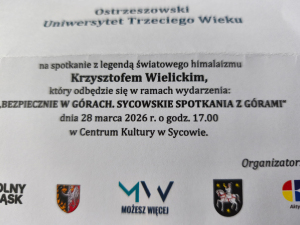 Stowarzyszenie #MożeszWIĘCEJ oraz Burmistrz Miasta i Gminy Syców Łukasz Kuźmicz zapraszają na wyjątkowe wydarzenie „Bezpiecznie w górach. Sycowskie spotkania z górami”.